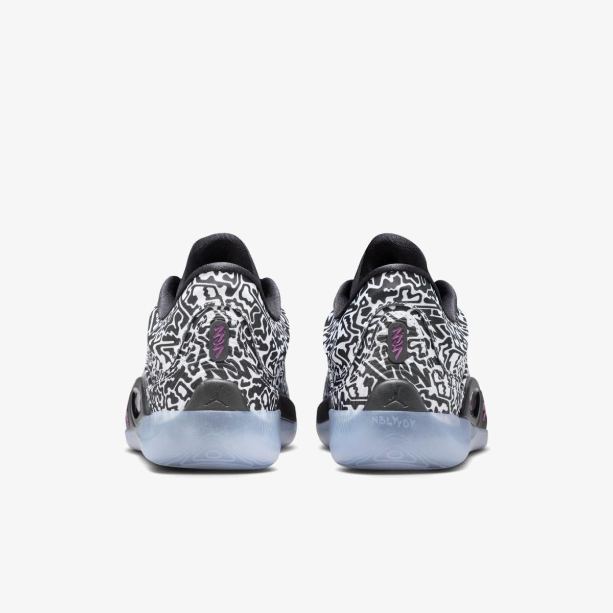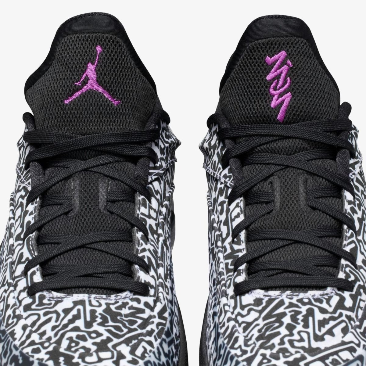 Чоловічі баскетбольні кросівки JORDAN ZION 4 "Out Of This World" — четверта сигнатурна модель Зайона Вільямсона у принтованому кольорі Black/White/Vivid Purple з абстрактним картографічним малюнком на верхній частині.