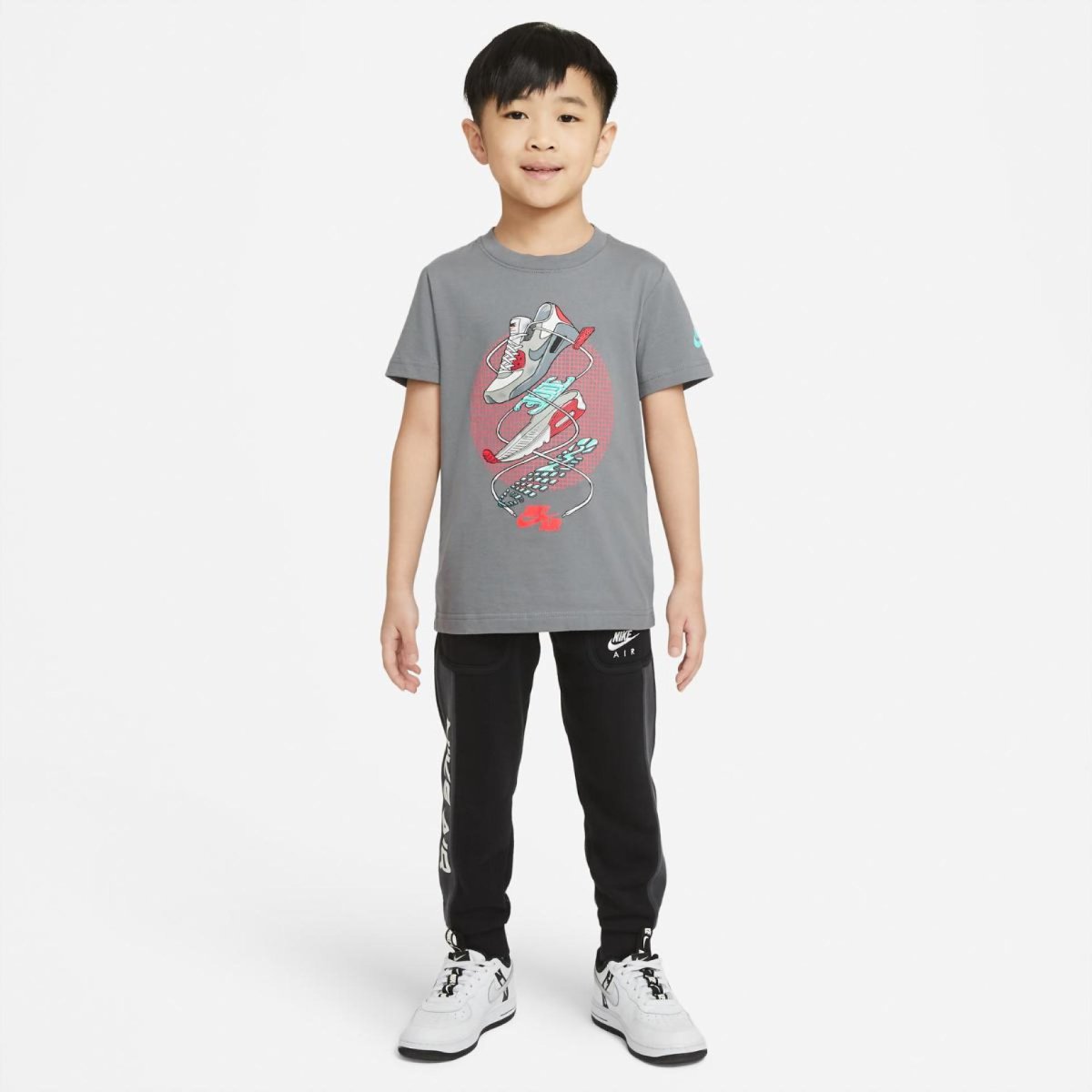 графіка кросівок Nike Air Max на грудях. Логотип Nike Air на лівому рукаві.