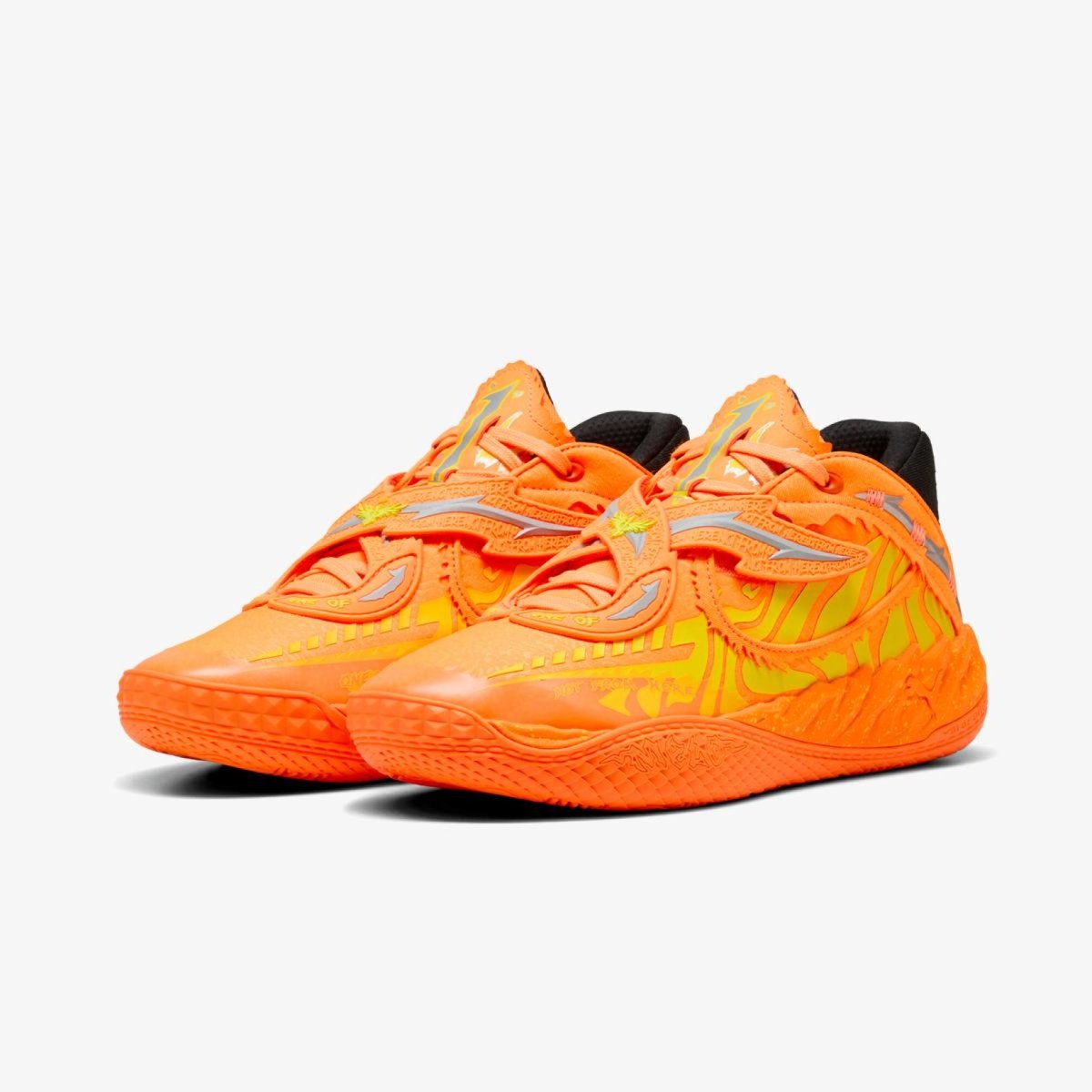 Кросівки Puma x Fast Furious MB.05 LA — ексклюзивна баскетбольна модель Ламело Болла, натхнена легендарним помаранчевим Toyota Supra Браяна О'Коннера з оригінального фільму «Форсаж». Кольорове рішення: Orange/Yellow/Black. Реліз: 12 лютого 2026 (All-Star Weekend LA).Технологія Nitro Foam у проміжній підошві забезпечує легке та чуйне пом'якшення, оптимізоване для баскетбольної гри.Верхня частина з легкої сітки з вентиляційними отворами — підвищена повітропроникність для активної гри на паркеті.Фіксуючий каркас п'ятки та ремінці через передню частину стопи надають додаткову підтримку та фіксацію при динамічних рухах.Рельєфний протектор підошви з підвищеним зносостійким малюнком забезпечує зчеплення з паркетом та вуличними поверхнями.Полум'яна графіка та контрастні деталі відтворюють декор Toyota Supra Mk IV з культового фільму.
