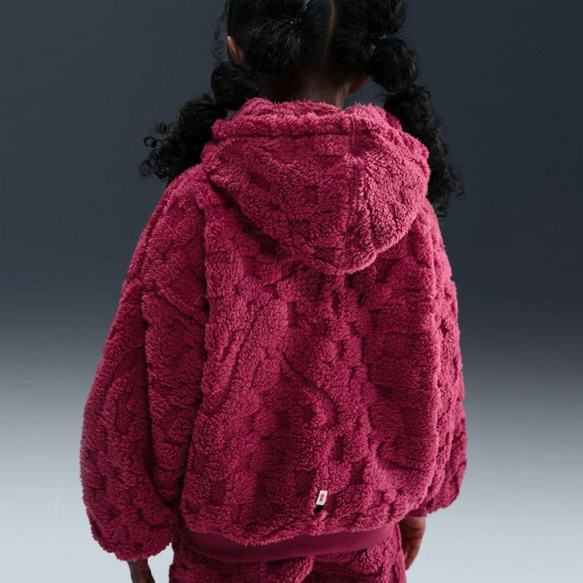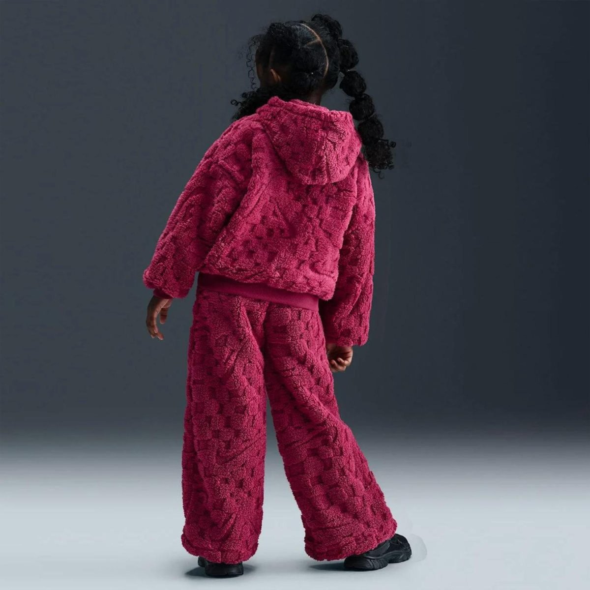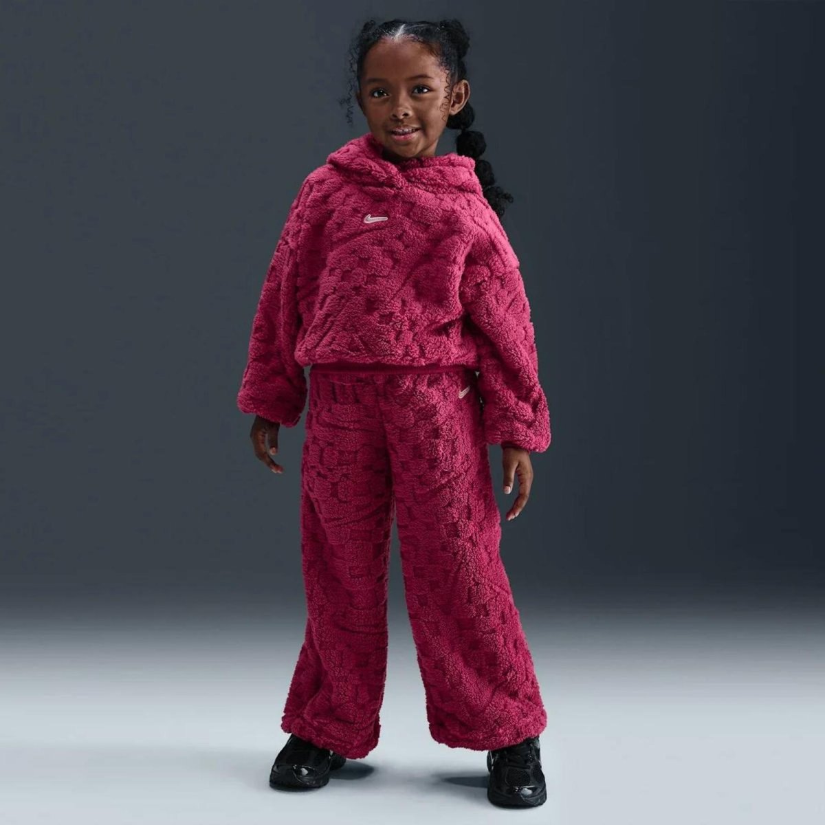 NIKE NKG COZY PO HOOD PANT SET изготовлен из мягкой жаккардовой шерпы, он