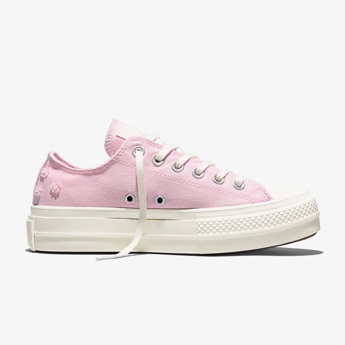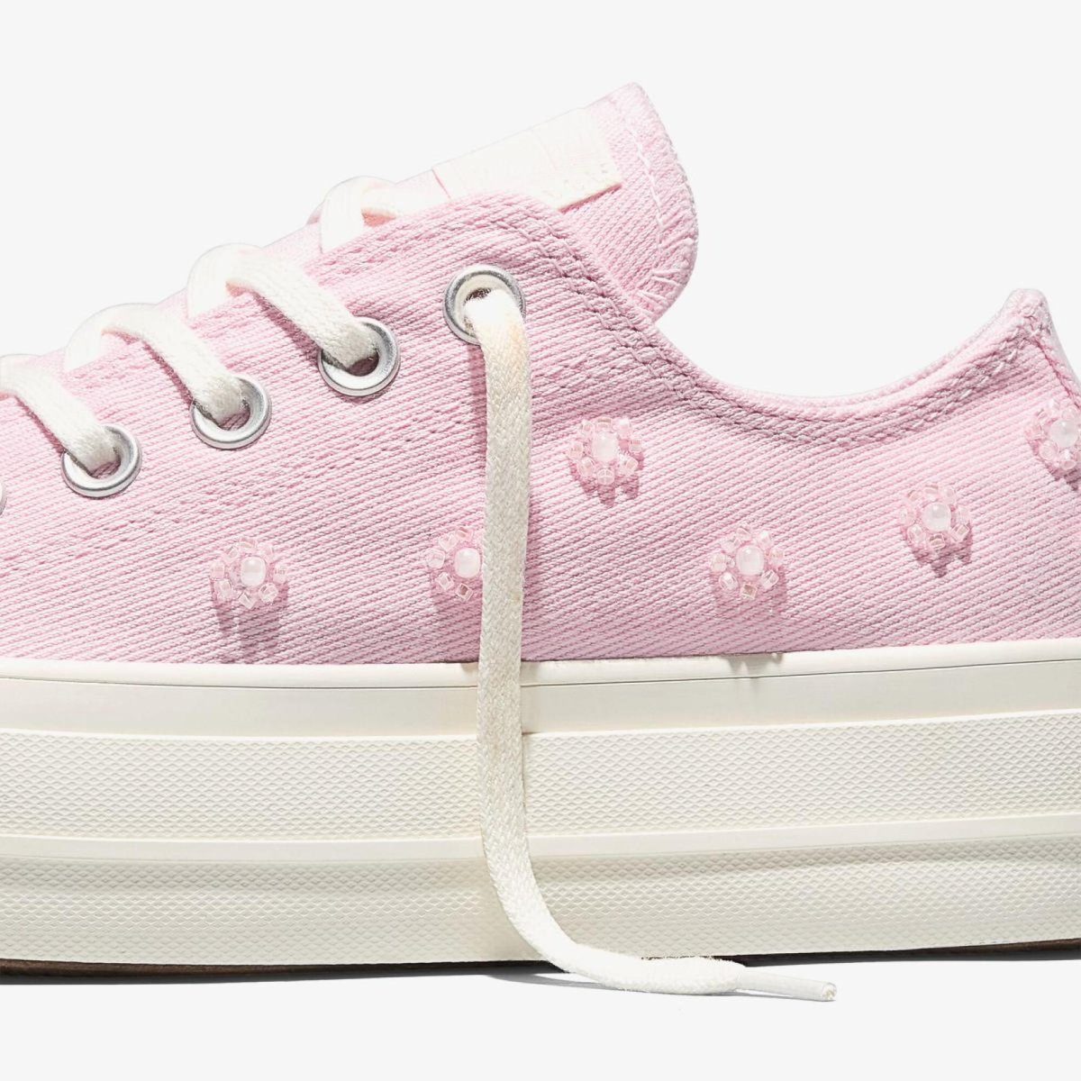 Женские кеды CONVERSE CHUCK TAYLOR ALL STAR LIFT OX — низкая платформная версия культового Чака Тейлора с декоративными бусинами в розовом оформлении для выразительного женственного стиля.